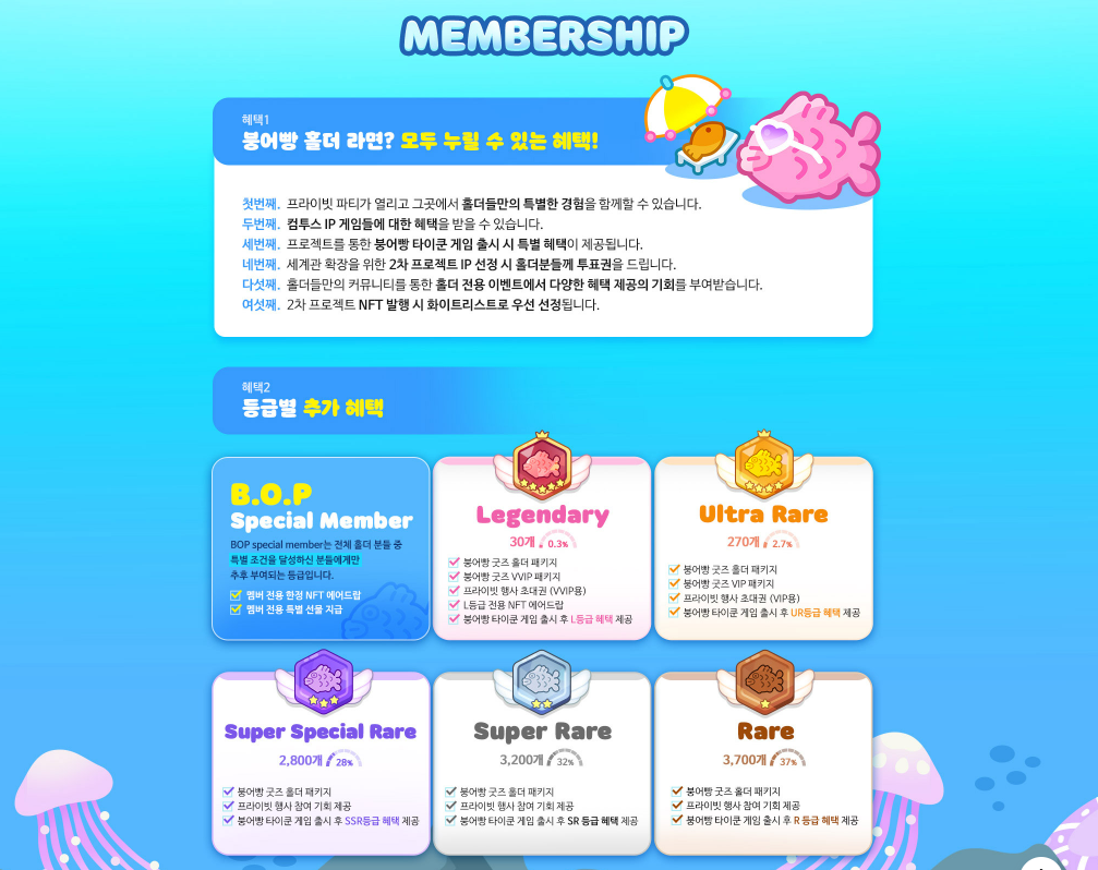 추가적으로 NFT 등급별 혜택도 존재하는데요.