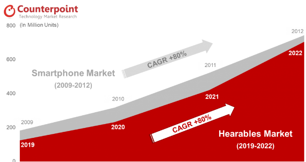 블루투스 무선 이어폰 시장 폭발적인 성장세를 보이고 있습니다. 리서치 기관에서는 스마트폰 시장에 빗대어 표현하기도 합니다. 리서치 기관들에 따르면 2020년 무선 이어폰은 2억 2~3천만 대가 팔릴 것으로 예상하며 시장 규모는 21년까지 약 270억 달러(약 30조) 규모까지 성장할 전망입니다. 2025년에는 무려 15억대가 팔릴 것으로 예상하기도 합니다. 불과 1~2년 전만 하더라도 사람들은 대부분 유선 이어폰을 쓰고 있었지만 지금 지하철만 타봐도 대부분이 블루투스 무선 이어폰을 쓰고 있는 것과 함께 블루투스 이어폰 교체주기가 짧다는 점을 고려하면 무리한 전망도 아닌 것으로 보입니다. 애플은 작년 에어팟 매출만 120억 달러(약 14조)에 달했으며 업계 2, 3위를 다투는 삼성전자와 샤오미에 이어 아마존, 마이크로소프트도 무선 이어폰 시장에 진출하면서 무선 이어폰 시장은 불타오르고 있습니다.