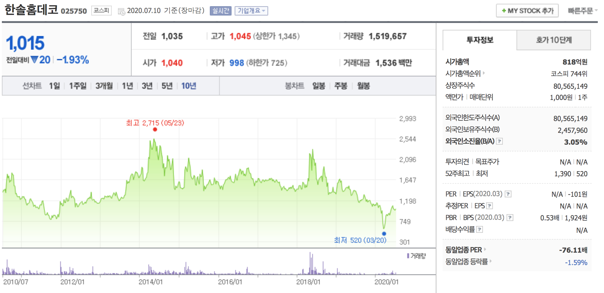 한솔홈데코는 종합건축자재 생산업체로써 우수한 품질의 국내 중밀도 섬유판(MDF), 마루바닥재, 인테리어재 등을 생산 및 판매하고 있습니다. 올 1분기 영업이익은 흑자이나 당기순이익에서 적자를 기록했습니다. 가구, 인테리어 전체 종목과 비슷한 주가 흐름을 보이고 있습니다.