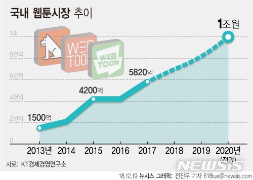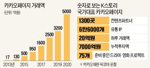 2013년 처음 서비스를 시작한 카카오페이지(픽코마 포함)는 누적 가입자 수 3,500만 명을 넘겼으며 기준으로 하루 평균 거래액도 20억 원을 넘어섰습니다. 다음 웹툰 누적 가입자 수는 1,800만 명을 넘겼으며 월간 순 방문자수는 700만 명을 넘어갑니다.