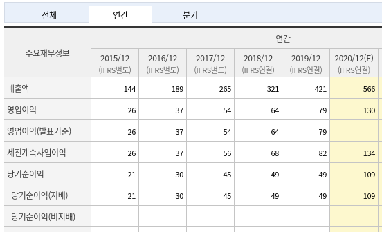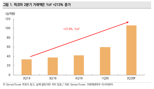 픽코마는 가파른 성장세를 보여주고 있습니다. 픽코마는 일본 전체 앱 매출액 기준 4위를 기록했으며 2분기 거래액은 전년 동기 대비 212.8% 상승했으며 앱 다운로드도 118.2%가 늘어났습니다. 카카오페이지도 2019년에 2015년(301억 원)보다 8배 증가한 2,570억 원의 매출을 올리며 고속 성장을 하고 있습니다. 당기순이익도 지난 4년간 적자와 흑자를 반복해가며 지지부진했지만 19년 역대 가장 많은 순이익을 내며 흑자전환에 성공했습니다. 최근 드라마 <이태원 클라쓰>의 성공으로 다음 웹툰으로의 역유입도 발생하며 좋은 기류를 보이고 있으며 최대 기대작인 <나 혼자만 레벨업 시즌2>도 연재를 시작하며 더 큰 도약을 기다리고 있습니다. 또한 카카오페이지는 한국 증시에, 카카오재팬은 노무라증권을 주간사로 일본 증시 상장이 예정되어 있어 기대감도 모으고 있습니다.
