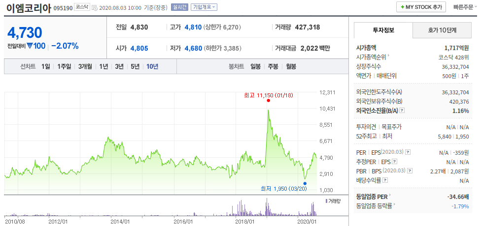 이엠코리아는 공작 기계, 방산부품 및 대체에너지(수소발생기), TBM등의 제조를 영위하고 있습니다. 이엠코리아는 수소관련주로 분류되어있어 코로나 이후 좋은 상승을 보여주었고 인공태양 관련주로 또 다시 주목을 받았습니다. 이엠코리아는 '이터(ITER)'에 우리나라가 공급하는 부품인 '블랑켓 차폐블록' 2차분 제작 계약을 체결하여 관려주로 분류되고 있습니다.