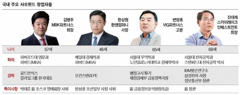 '진대제 펀드'로도 알려져 있는 스카이레이크 인베스트먼트는 삼성전자 사장과 정보통신부 장관을 역임한 진대제 대표가 이끌고 있는 국내 1세대 사모펀드입니다. ICT 및 제조업체를 중심으로 기술 분야 바이아웃(경영권 인수) 투자를 전문으로 하는 PEF 운용사입니다. 과거 한미반도체, 청담러닝, 우진기전, 다산네트웍스, SFA, 일진반도체 등에 투자한 바 있으며 현재 아웃백코리아 매각을 진행 중에 있으며 지분을 보유한 에이플러스 에셋 상장, 차후 야놀자 상장까지 앞두고 있습니다.