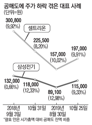 제약, 바이오 회사들 역시 공매도에 몸살을 앓아왔습니다. 특히 셀트리온이 그런데, 2013년부터 공매도 세력의 집중 포격을 받아왔습니다. 공매도 금지 전 셀트리온의 공매도 잔액 비중은 8~11%대를 보여왔습니다. 2018년 한국거래소에 따르면 셀트리온은 9~10월 중 40 거래일 간 공매도 비중이 전체 거래대금의 18.6%까지 치솟기도 했습니다. 개인투자자 사이에서는 '셀트리온'='공매도'라는 인식이 팽배합니다.